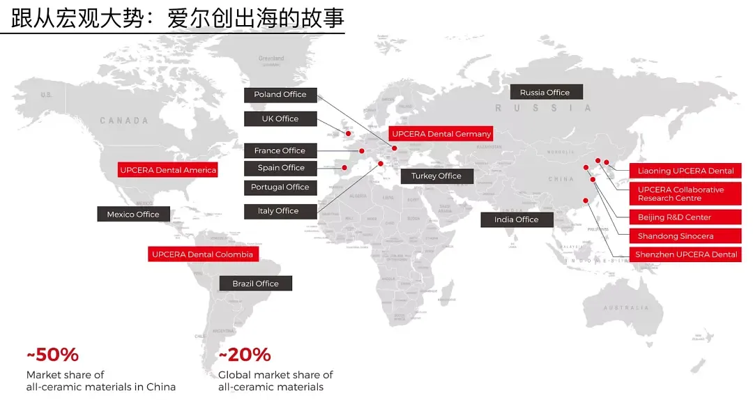 這種產品應用場景的一致性,在汽車、消費電子這些行業很難做到。汽車你在中國能賣,到歐洲可能因為排放、關稅、政治因素進不去。但牙科產品不一樣,法規相對統一、產品邏輯相通,這讓出海的門檻相對可控。